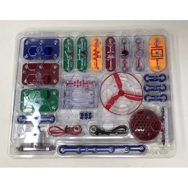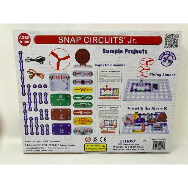 Contains: Total # of Pieces: 34 31 circuit components that snap together 1 base grid 1 toy box 1 instruction CAUTION: CHOCKING HAZARS - SMALL PARTS