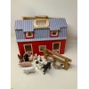 Contains: Total # of Pieces: 14 1 barn 1 wooden fence 1 adult goose 1 baby goose 1 pig 2 cows 2 horses 1 sheep 2 chickens 1 goat 1 turkey